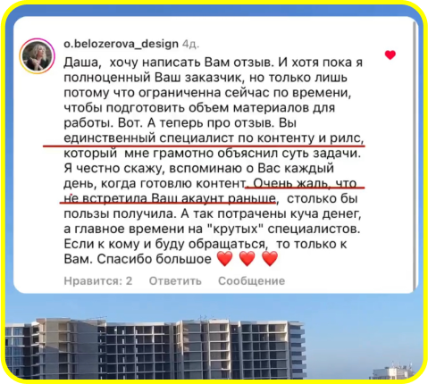 C ответами на вопросы, с обратной связью по стратегии, уже отснятым рилсам, по упаковке и по записанной актуально ОБО МНЕ